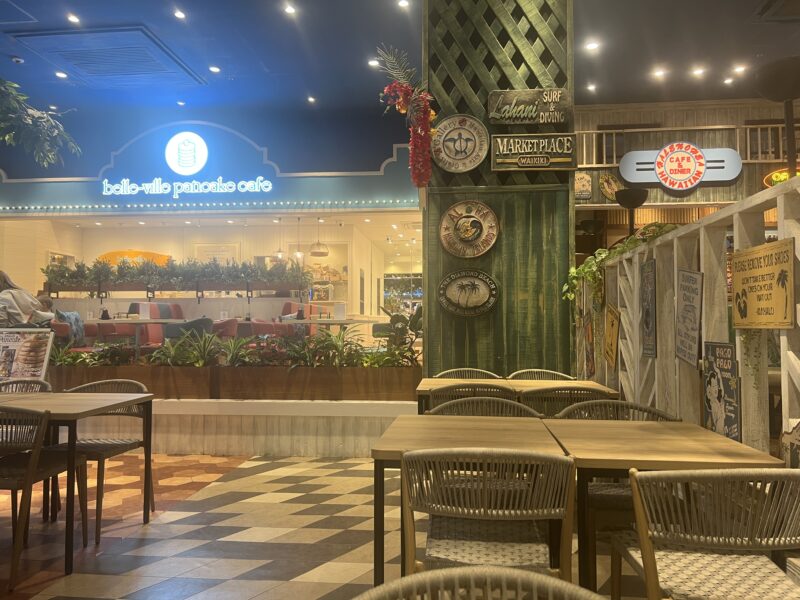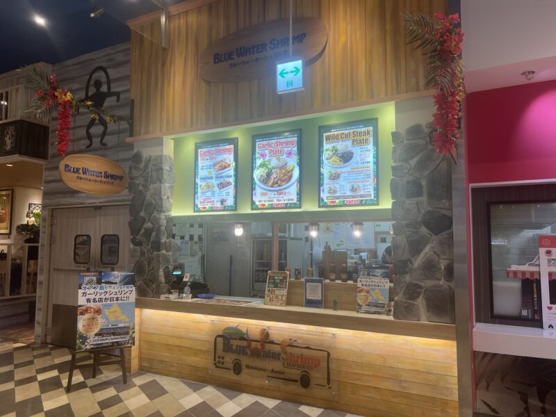 ブルーウォーター・シュリンプは横浜ワールドポーターズの1階にあります。コスモワールド側から入ると、1つ目のフードコートを抜けて奥にあるハワイアンタウン内のフードコートにあります。