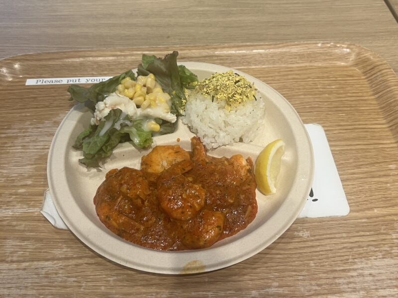 私が選んだのは、ガーリックシュリンププレート。サラダ、ライス付きで1,400円です。