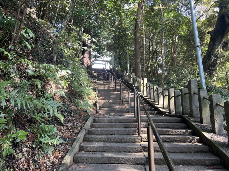入り口の鳥居をくぐると、長い階段が続きます。足が悪かったり、体力に自信がない方は、脇道のゆるい坂をのぼっていったほうがいいかもしれません。