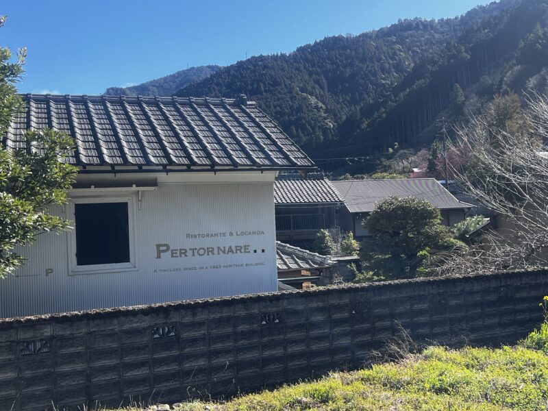 ペルトナーレは大正時代に建てられた築100年以上の古民家をリノベーションしたオーベルジュ(地方にある宿泊施設を備えたレストラン)です。オーベルジュはイタリア語でロカンダといいます。なので、「ロカンダ・デル・ペルトナーレ」は、ペルトナーレさんの食事付きお宿みたいな意味になります。