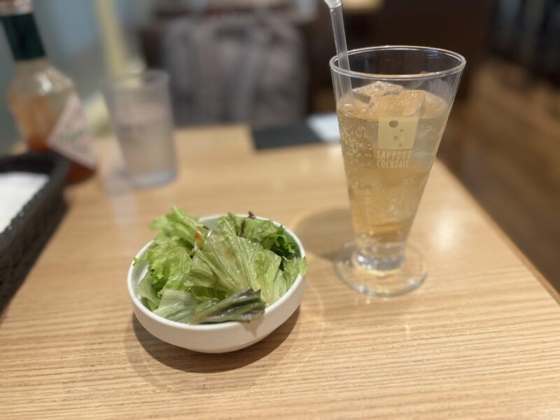 セットで選んだのはグリーンサラダとドリンク(ジンジャーエール)です。