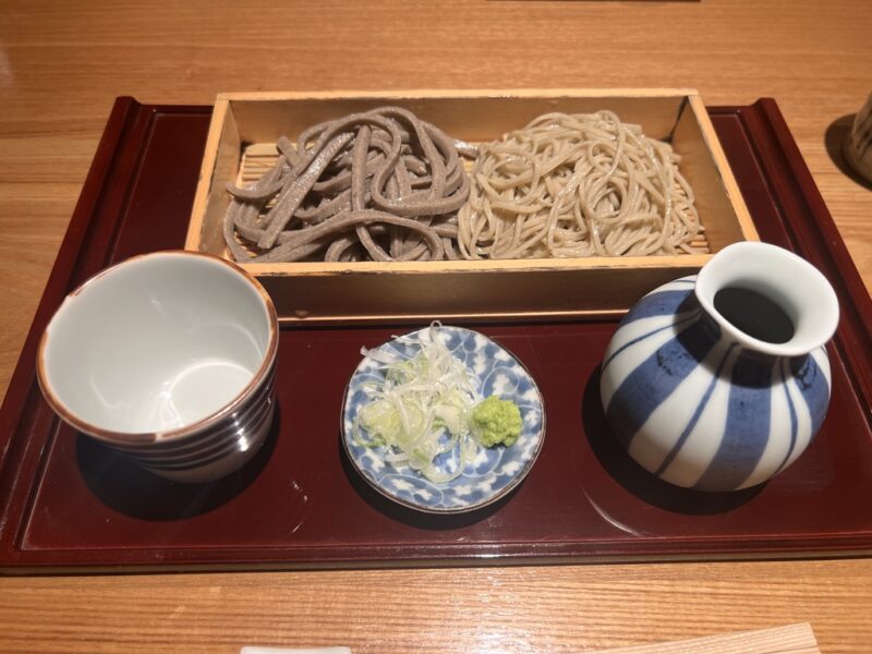天ぷらやおつまみも注文したかったのですが、とにかく時間がなかったので、一番早く出てくるものを聞いて注文しました。というわけで、選んだのが「二色」です。