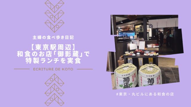 「御影蔵」は丸ビル6階にある和食のお店です。店内の窓側の席からは東京駅が一望できます。今回は、御影蔵で実際に食べたランチコースを写真付きで紹介しています。東京駅周辺で和食のお店を探している人はぜひ参考にしてくださいね。